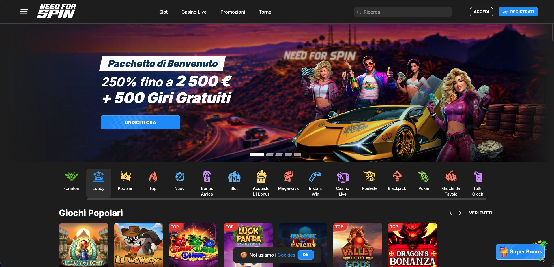| Need for Spin | 250% fino a 2.500€ + 500 FS | 4.000+ | 24h | ⭐⭐⭐⭐½ |