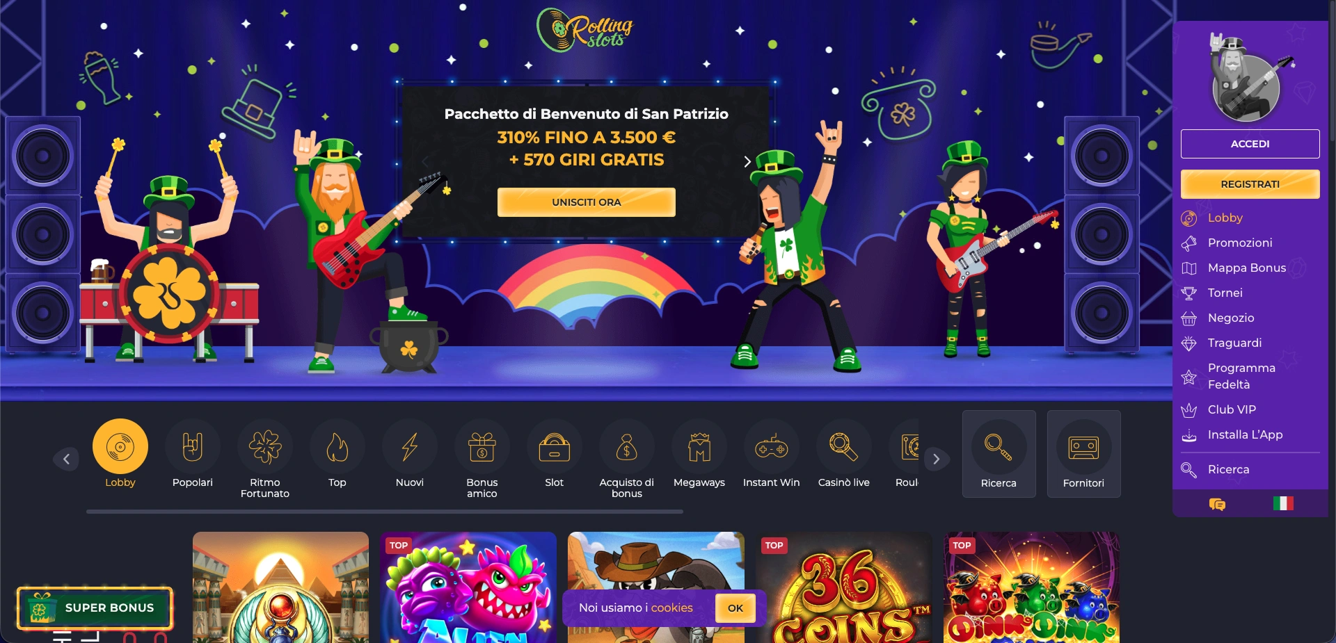 La piattaforma si distingue per la sua vastissima selezione di giochi – oltre 5.000 titoli – che include slot di ogni tipo, giochi da tavolo classici e un casinò live di altissimo livello. Rolling Slots è la scelta ideale per chi cerca il massimo valore dal proprio deposito.